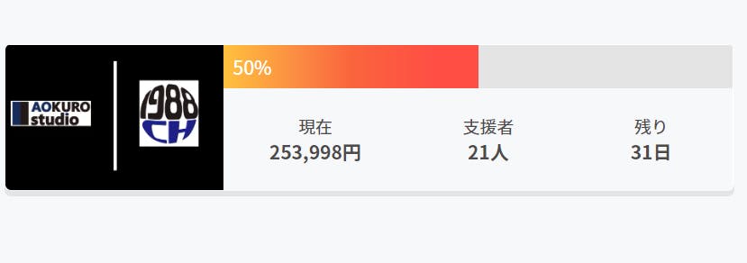 皆さまからの支援が積み重なり、本日目標金額の50%を達成したしました!