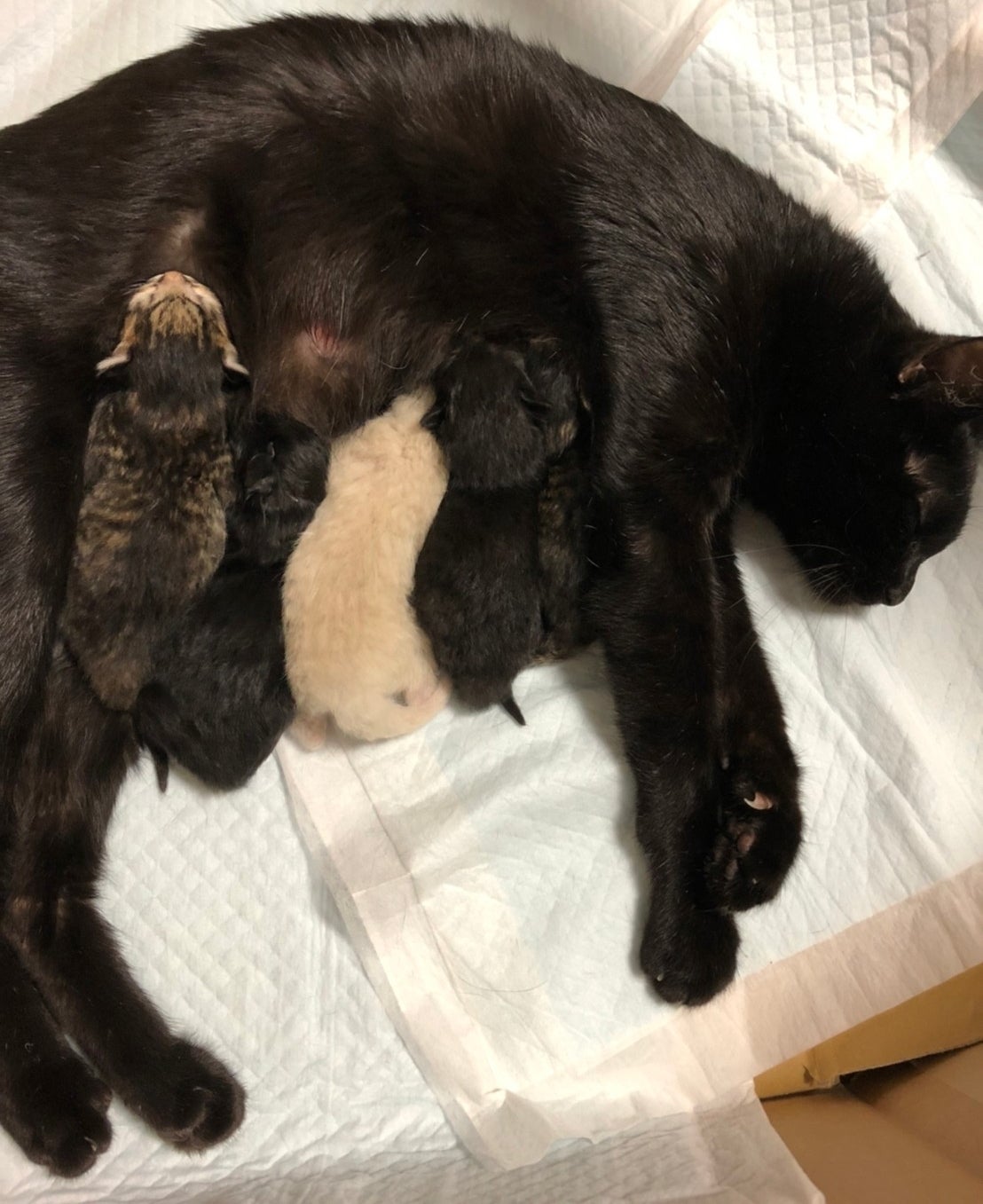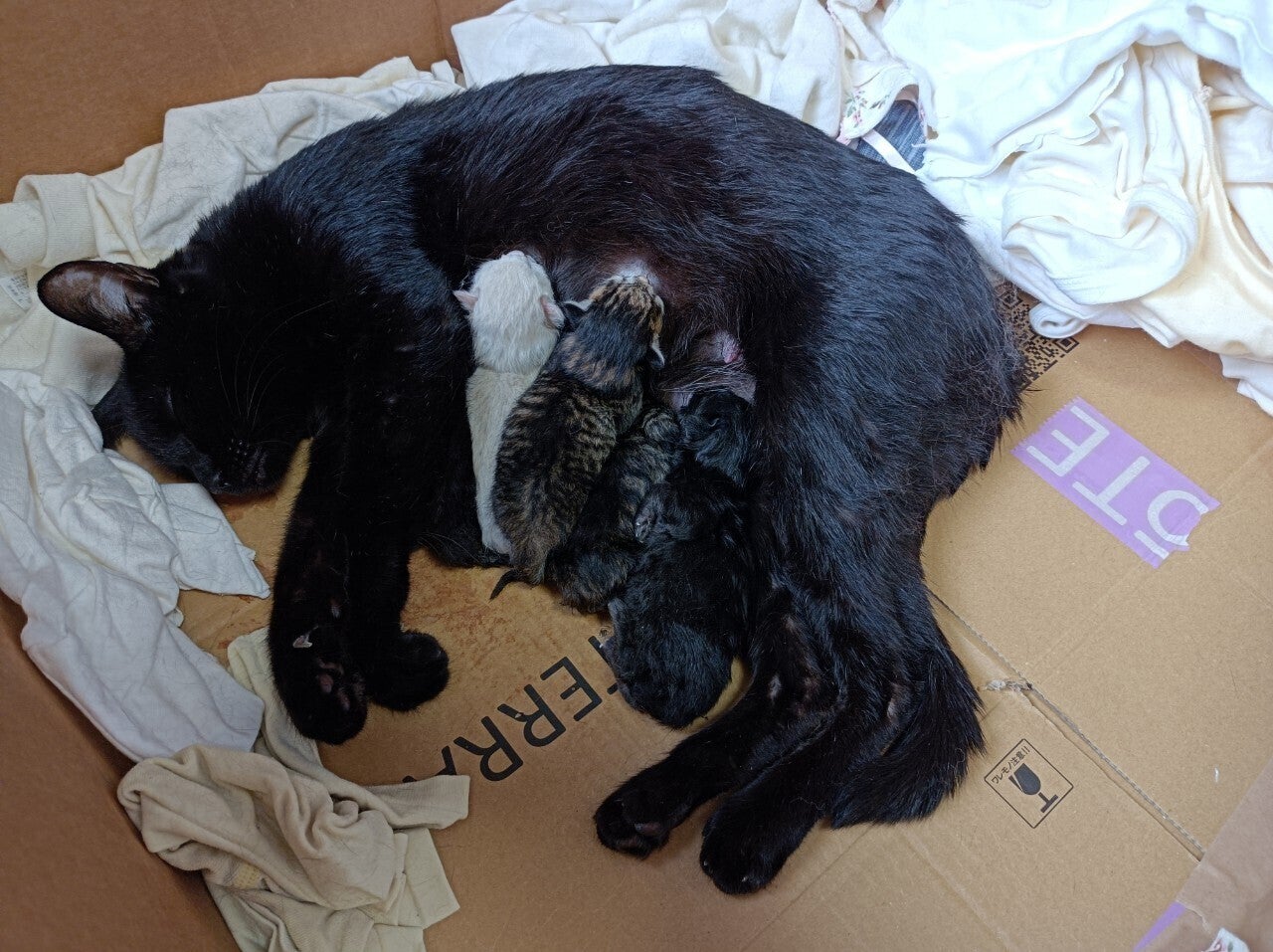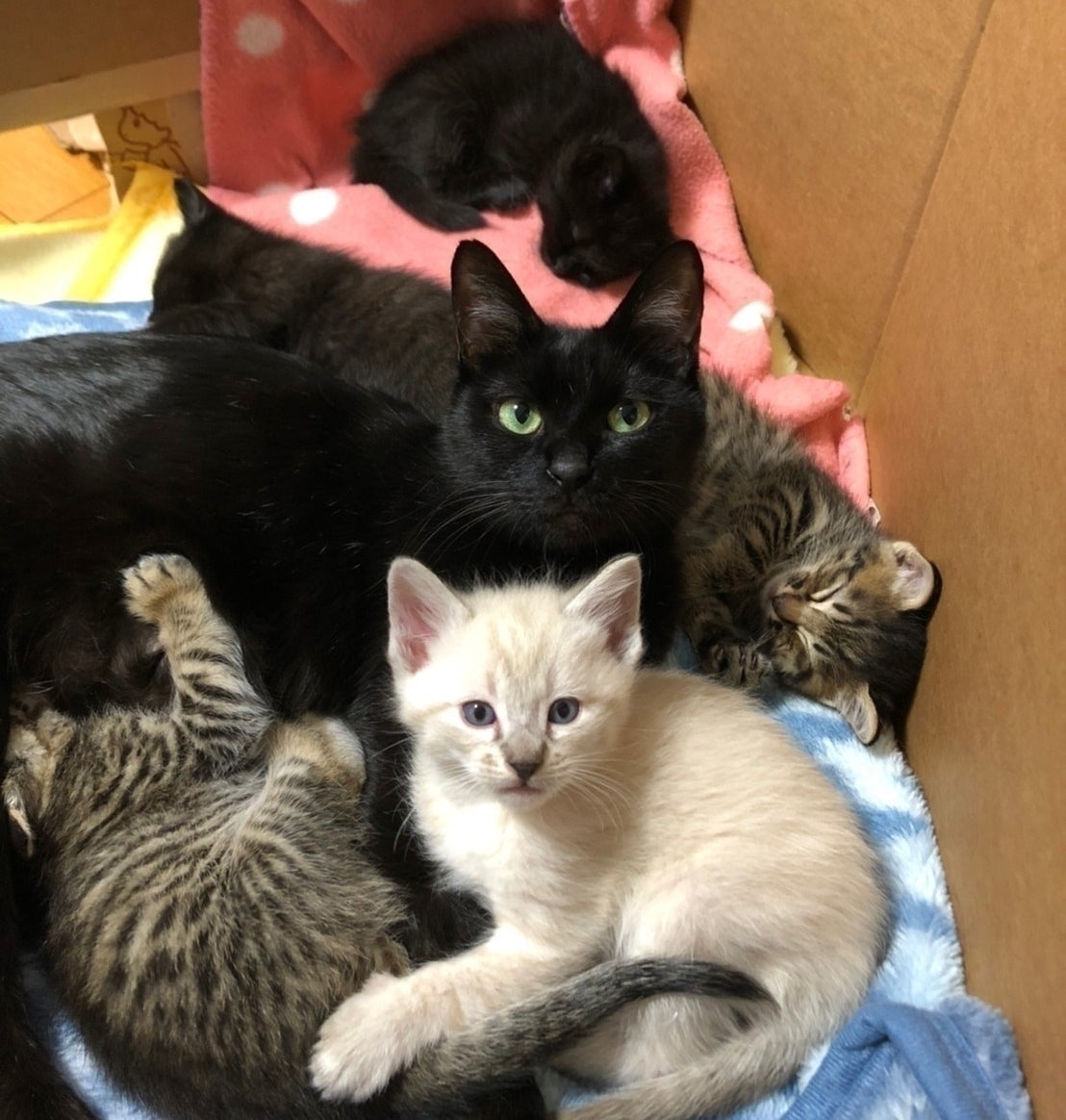 そんななか、この春に妊娠中期で保護された母猫を預かることになりました。そして出産まで見守り、4月1日の5つ子の出産に立ち会いました。
