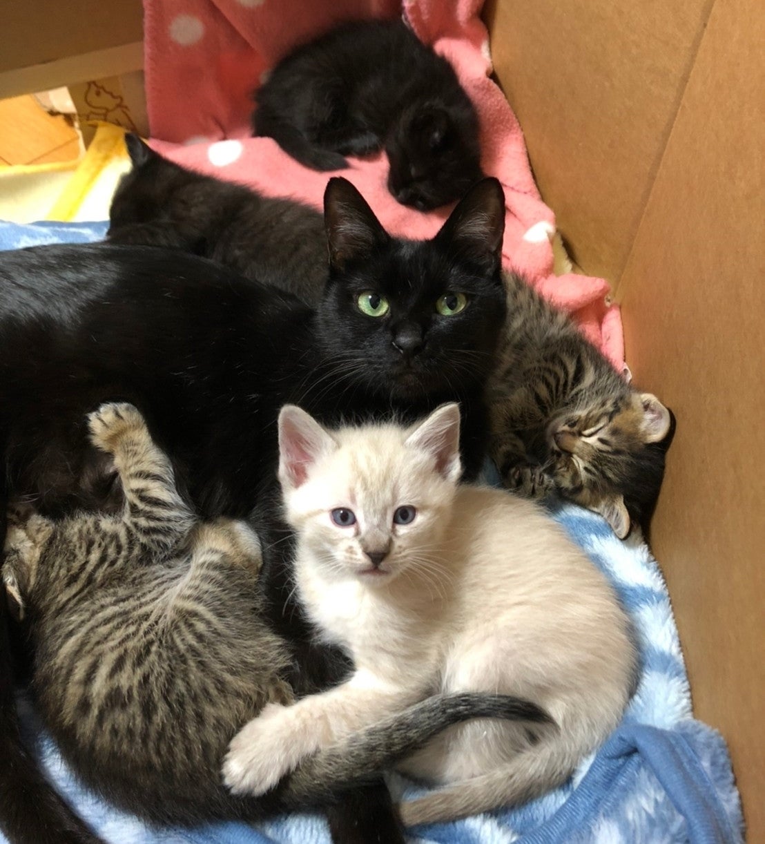 そんななか、この春に妊娠中期で保護された母猫を預かることになりました。そして出産まで見守り、4月1日の5つ子の出産に立ち会いました。