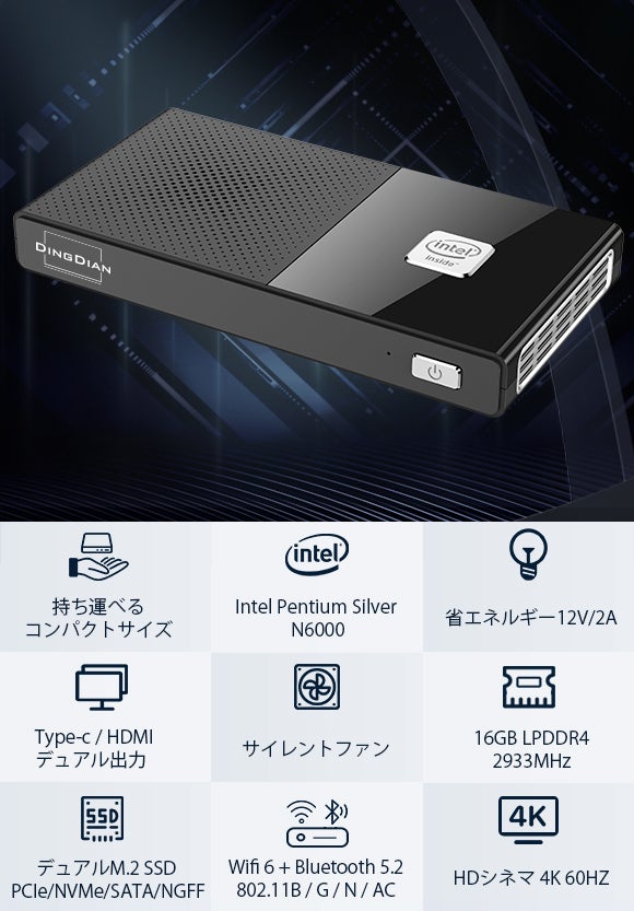 Inboda Intelligent Technology Co.、Ltdは、中国に本社を置くブランドデジタル製品会社であり、主にメカニカルキーボード、MNIPC、BluetoothヘッドセットなどのITデジタル製品に従事しており、市場の需要に応じて新製品を継続的に開発および設計しています。中国には生産サービスを提供する多くの協力工場があります。サプライチェーンの生産の適時性と品質を効率的に管理し、多くのブランドに製品開発と設計ソリューションを提供できます。これはクラウドファンディングの最初のデビューでもあります。DINGDIANは同社のミニpcブランドです。グローバルなミニpcテクノロジーの継続的な開発と改善に伴い、ミニpcも急速な反復アップグレードを行っています。最新のミニpcを開発することを目指しています。将来的には、独立したグラフィックカードを備えた新しいミニpcを発売します。