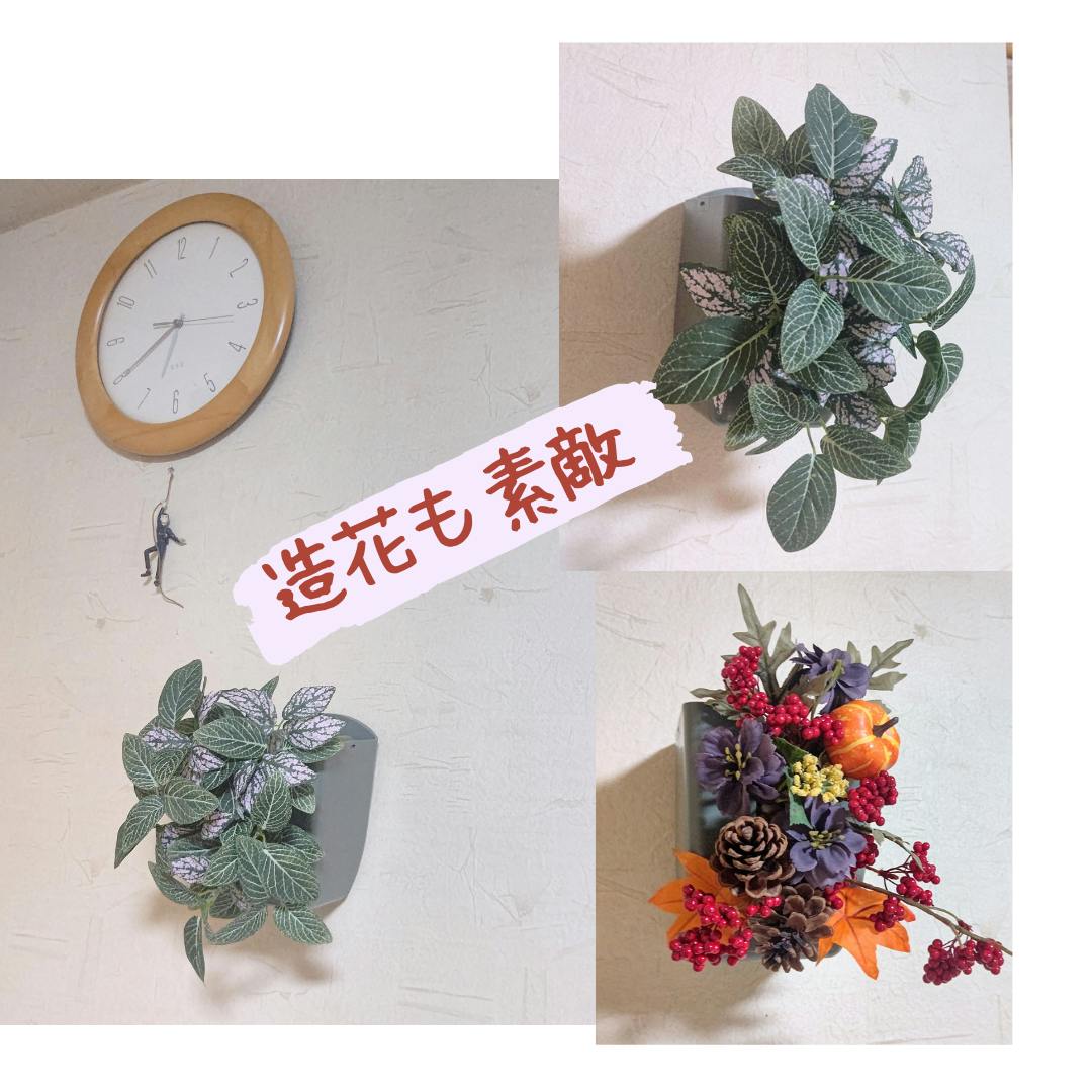 観葉植物のアーティフィシャルや、季節の小物をあしらってリビングなんかに飾ると素敵です。