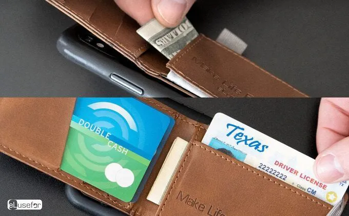 銀行カード、ID、名刺、お札、小銭用に6つのスロットがあります。