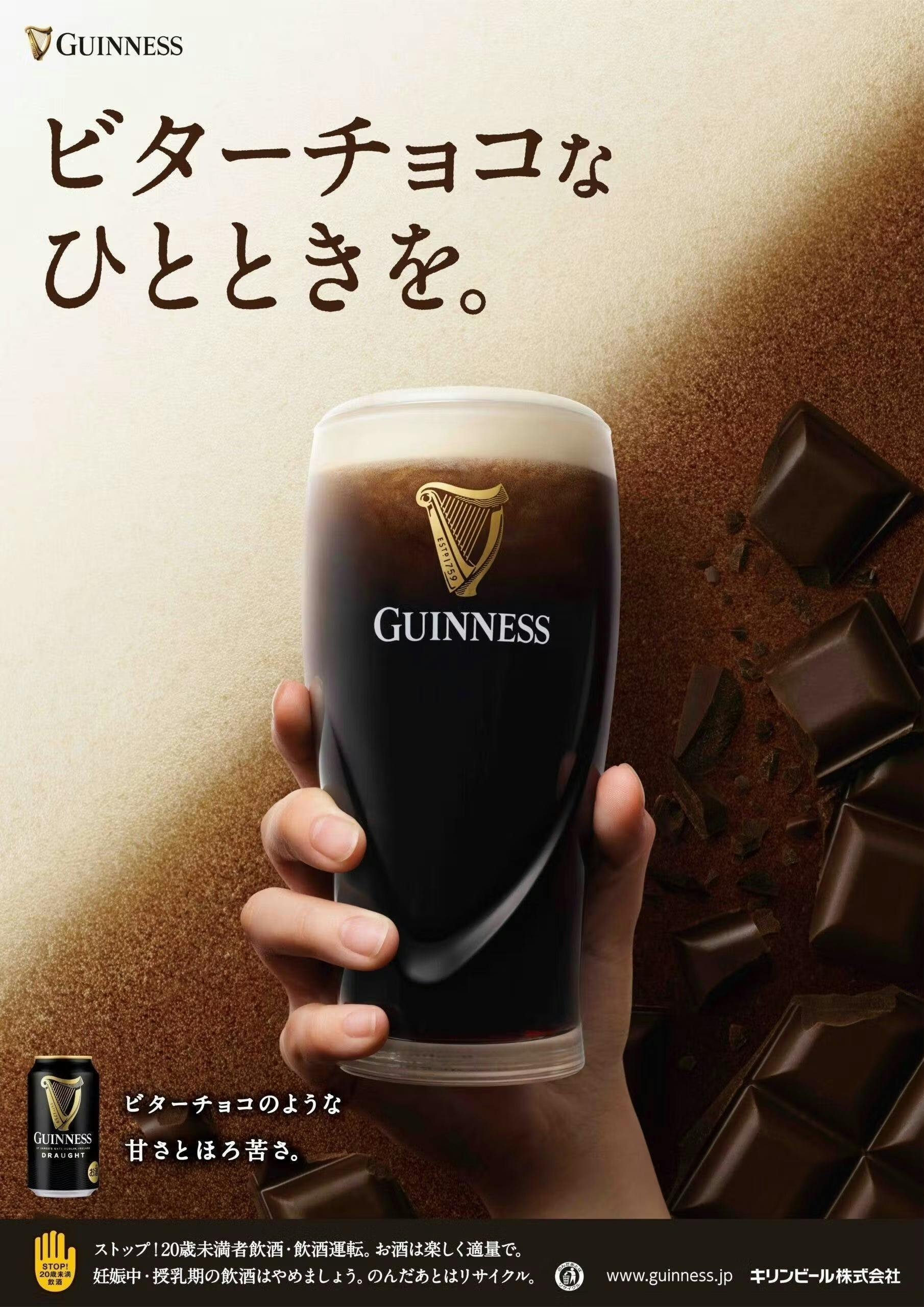 1759年にアイルランドで誕生したブランドで、世界約150カ国で楽しまれている。独自の技術による極めてクリーミィな泡となめらかな喉ごしが特長の上面発酵のプレミアムスタウトビールです。ビターチョコのようなほのかな苦みと甘みのバランスで自分へのご褒美のような贅沢な時間をお楽しみいただけます。