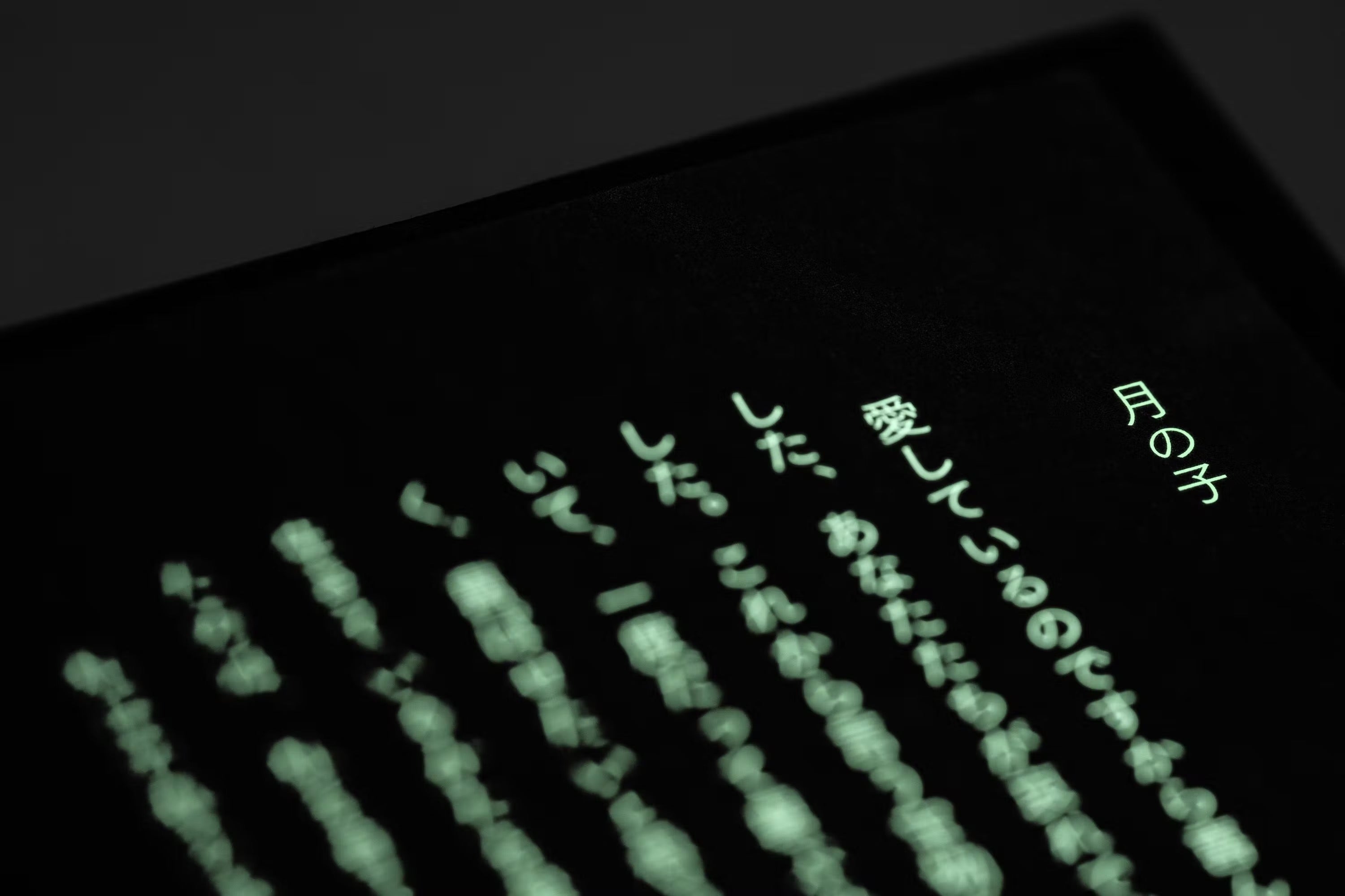 蓄光の、夜に光るインクで言葉の全てが印刷されています。」