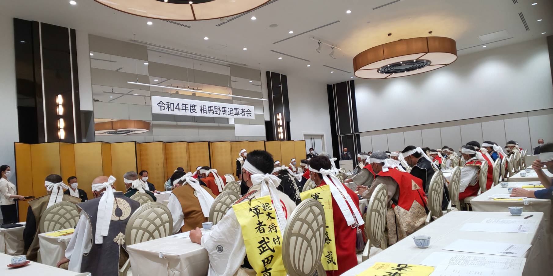 この会の開催にあたっては、各郷の螺役長による法螺貝から開式となります。法螺貝の音を聞くといよいよ野馬追が近付いたと実感し武者震いが湧いてきます。