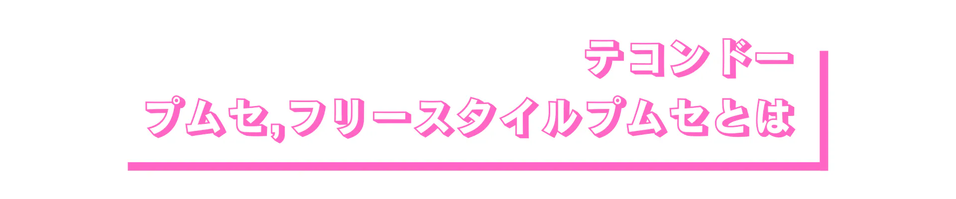 プムセは、日本語で言う型の種目になります。試合では8種類の中から2種目のプムセを行い、正確性や出来栄えなどから競われる採点競技です。