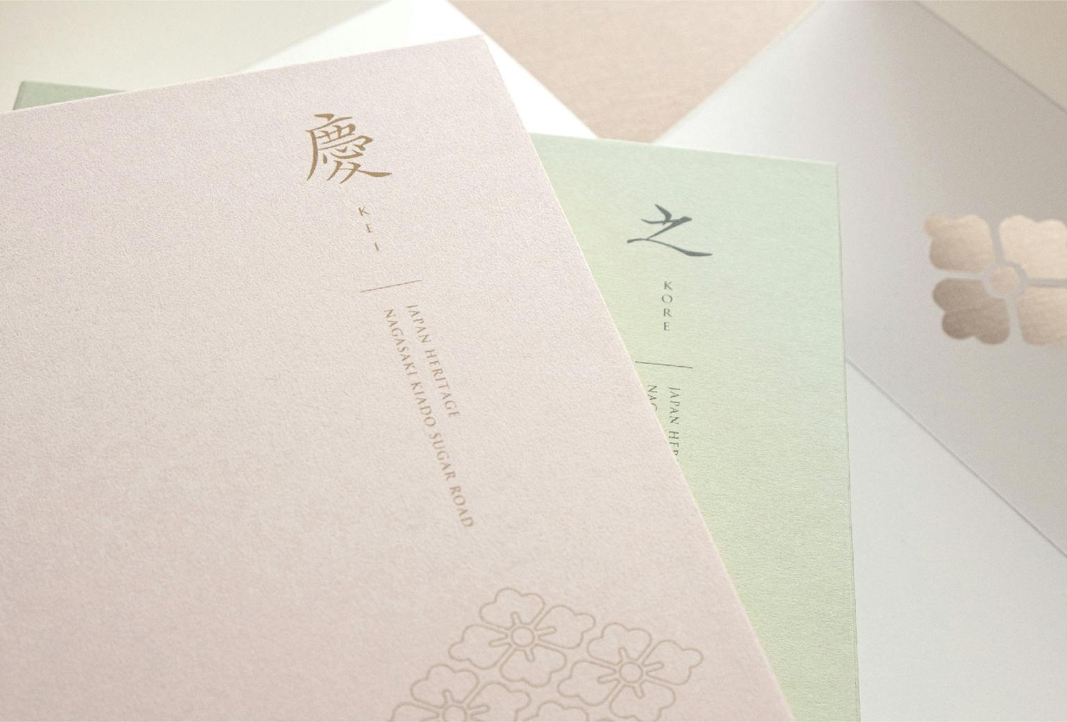長崎らしい、新しい「伝統のスイーツ」の名前は、和のほうが「慶(けい)」日本古来の桜色、洋のほうは「之(これ)」鶯色。ともに長崎の女傑のひとり「大浦お慶さん」の家紋を