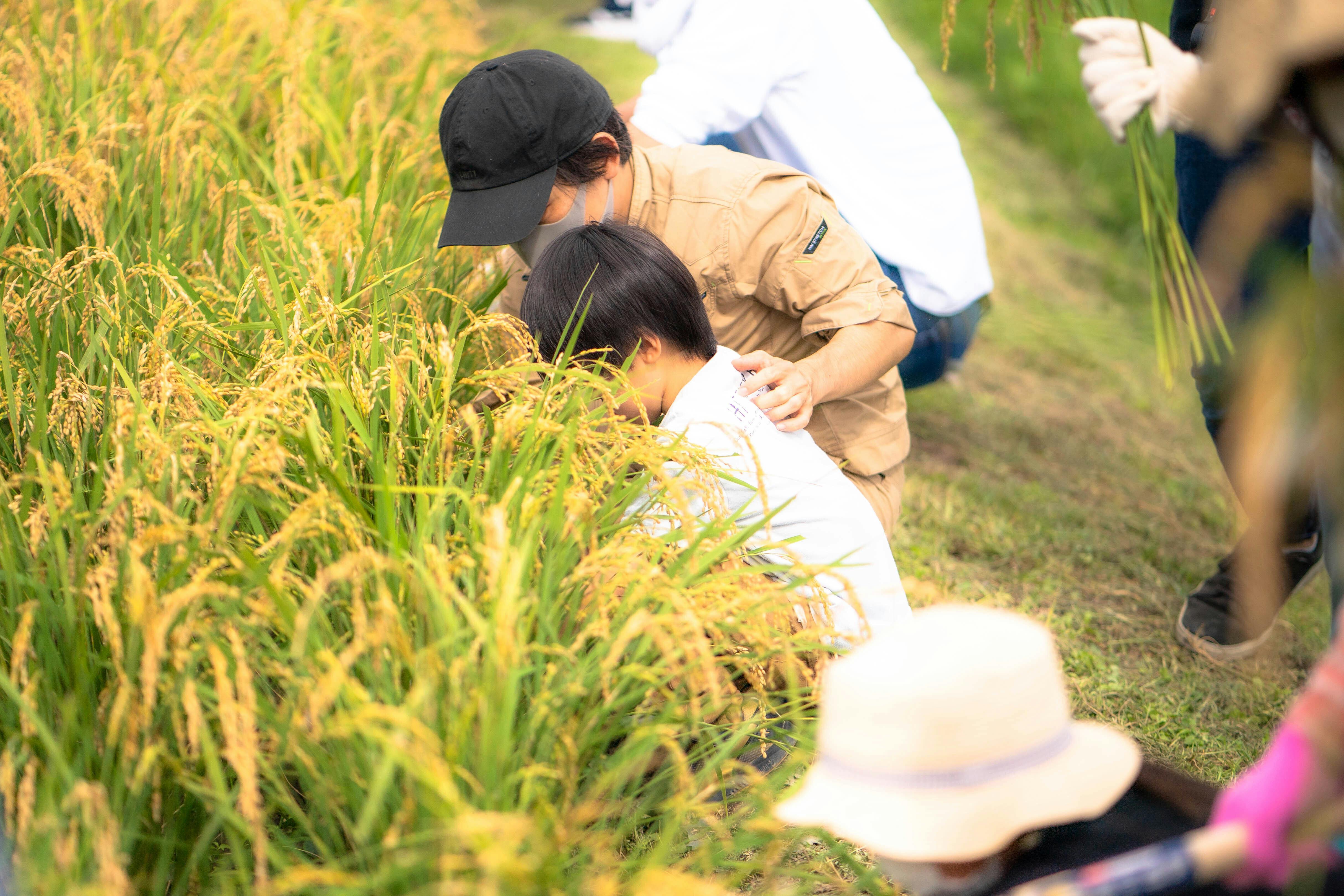 上の画像は稲刈り体験イベントを実施した時のお写真です!