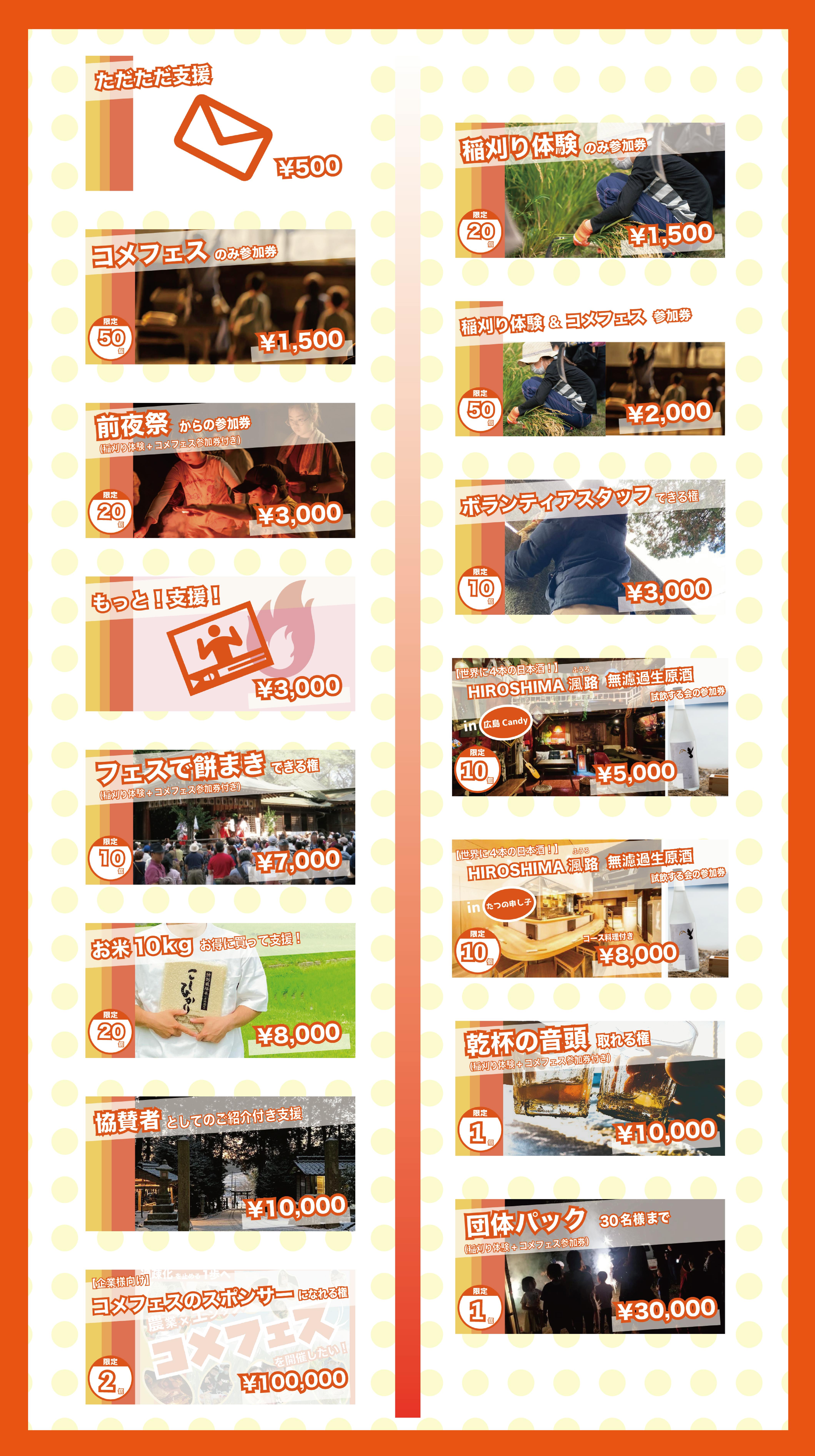 過疎化の進む『広島県三原市大和町』を盛り上げる為に、稲刈り体験と亀山神社でのお祭り『コメフェス』を開催するプロジェクトです!