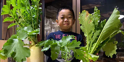 今回のプロジェクトの発起人でもある、早乙女けんごくん(9歳)はてくてくの杜で出会いました。