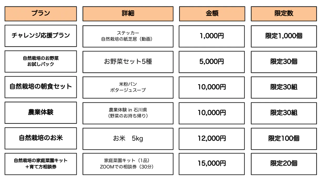 本プロジェクトはAll-in方式で実施します。目標金額に満たない場合も、計画を実行し、リターンをお届けします。