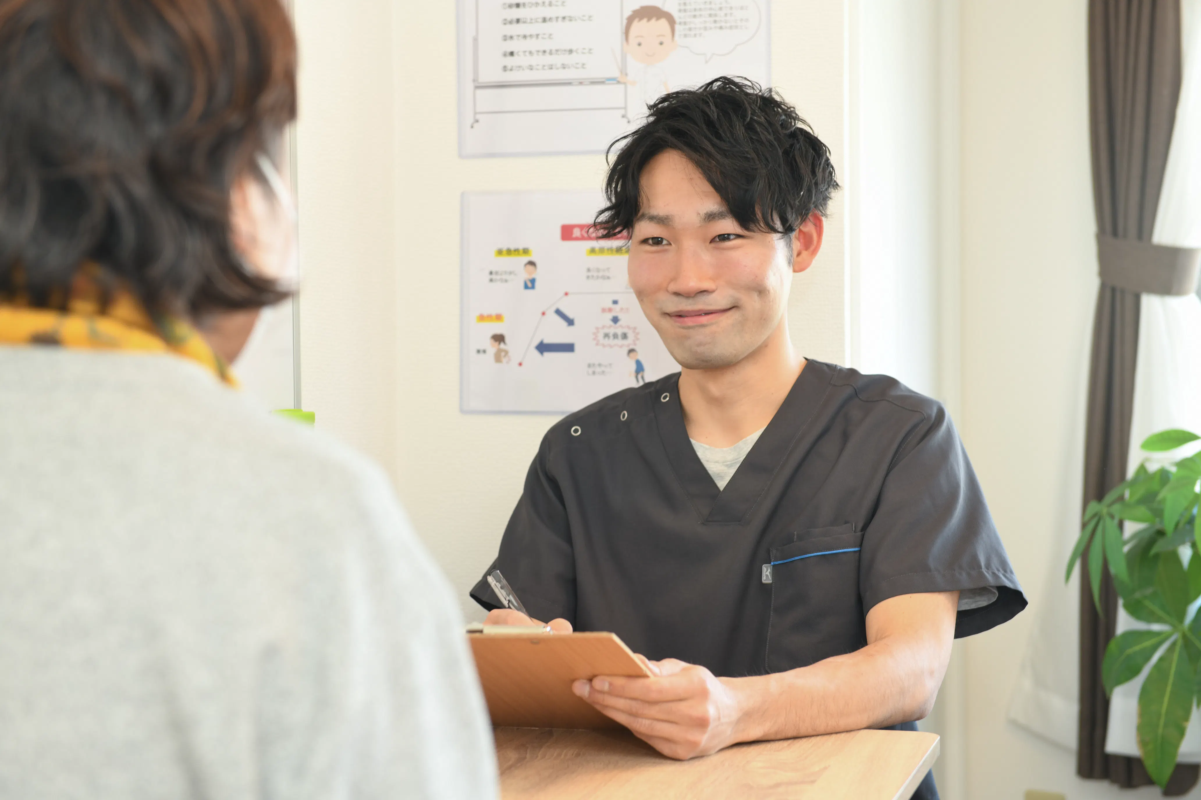 話がしやすい、話を聞いてくれる、というのはとても大事なことだと考えています。話をすることでリラックスできたり、気分転換になることも多いからです。体のことはもちろんですが、どんなことでもお話できるように、僕たちはいつも心をオープンにしてお客様をお待ちしています。