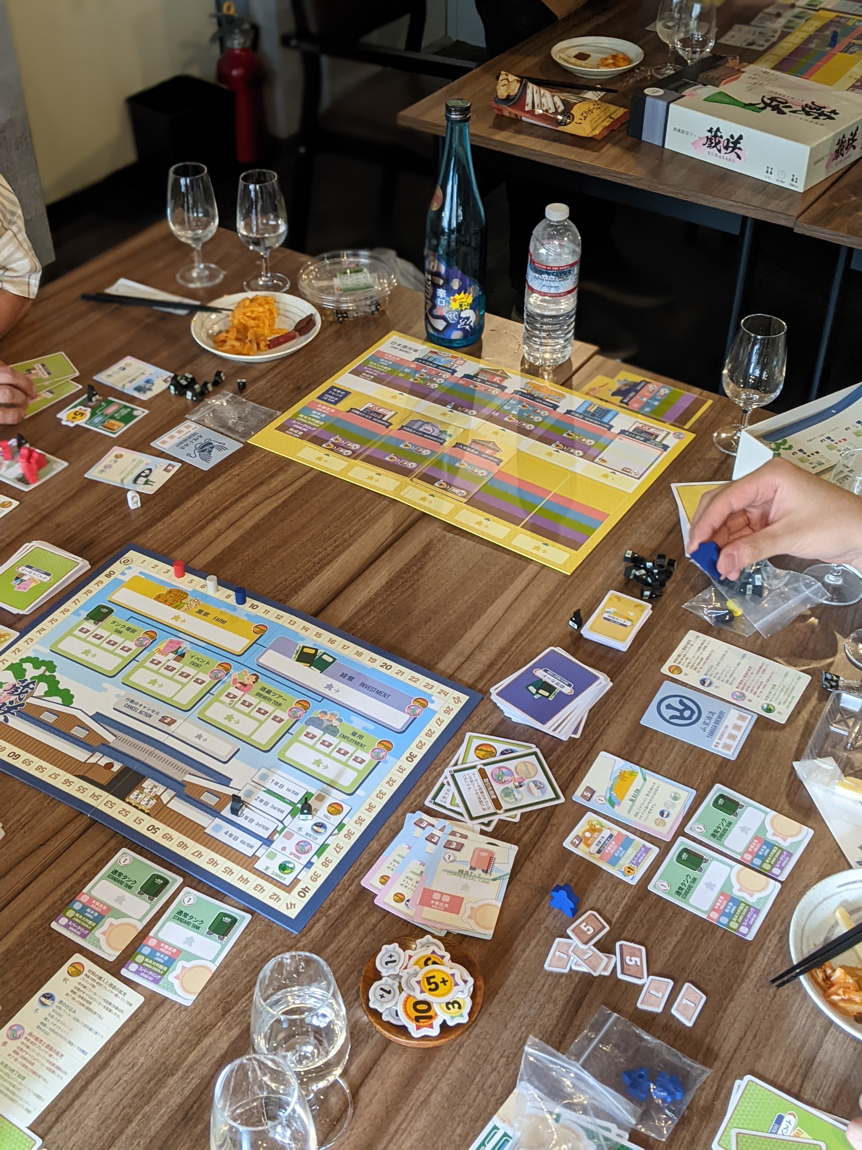 各回10名程度まで。1500円で日本酒試飲付き(実質飲み放題ですが、ゲーム試遊がメインであることはご理解ください)。ルールのインストを含めて3時間程度。
