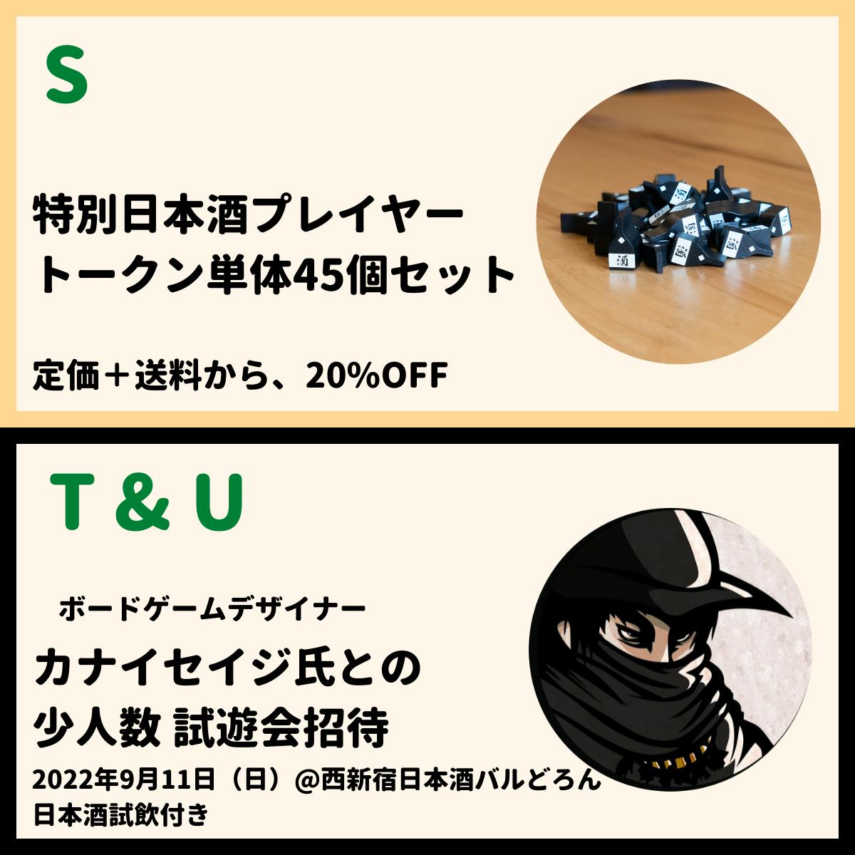 リターンT & U: ボードゲームデザイナー カナイセイジ氏と遊ぶ、蔵咲試遊会参加権利(日本酒試飲付き)@東京 西新宿