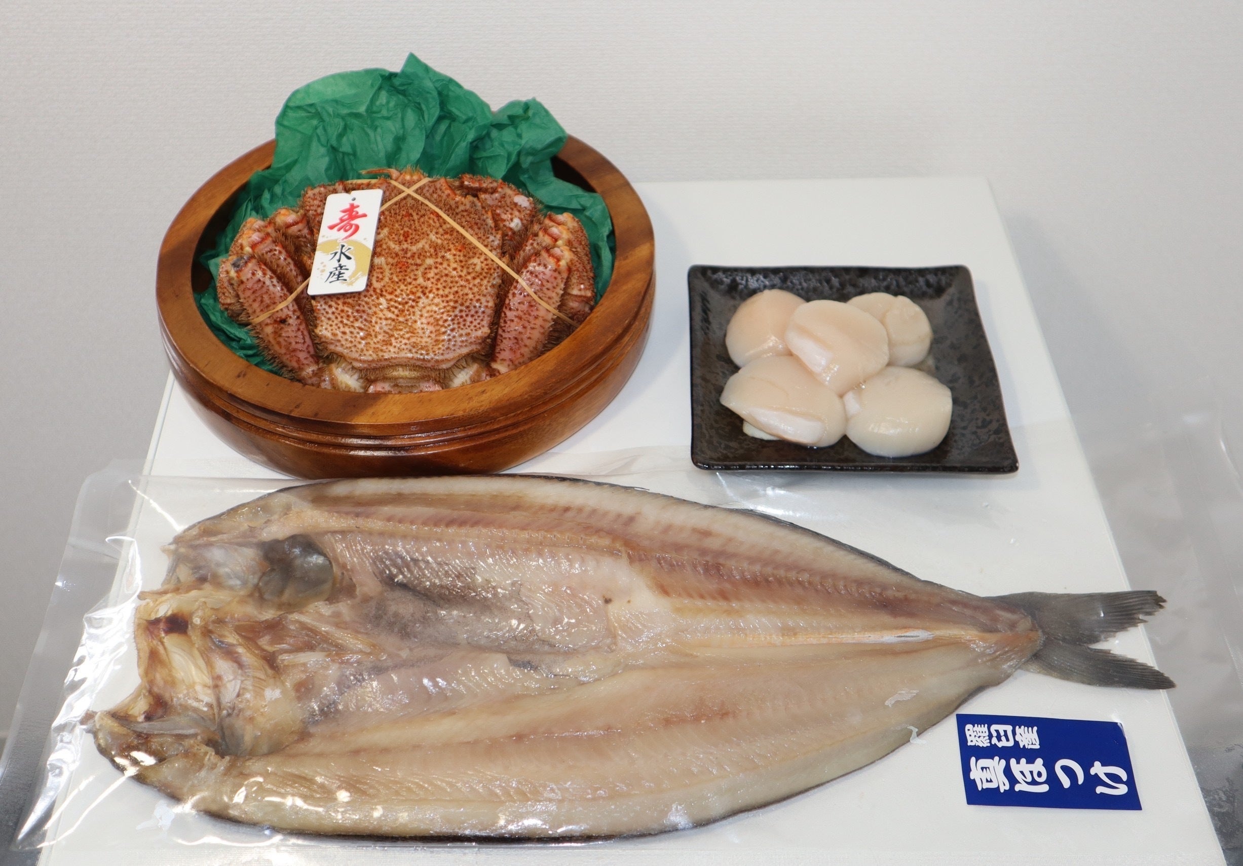 北海道を代表する海鮮物の毛ガニ、ほたて、ほっけを詰め合わせました!