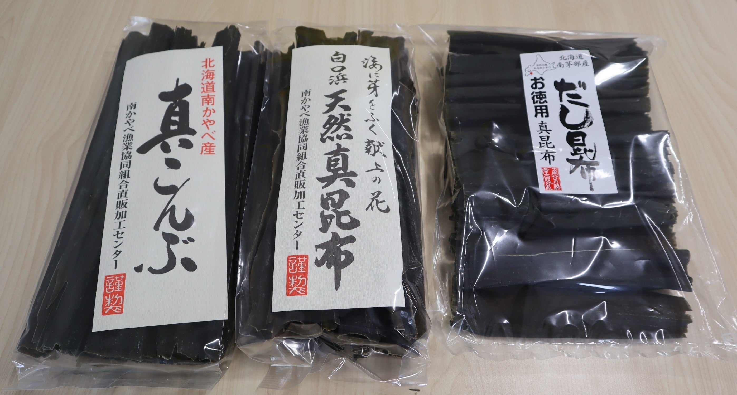 北海道産のとろろ昆布やわかめと、真昆布だしのセットです。
