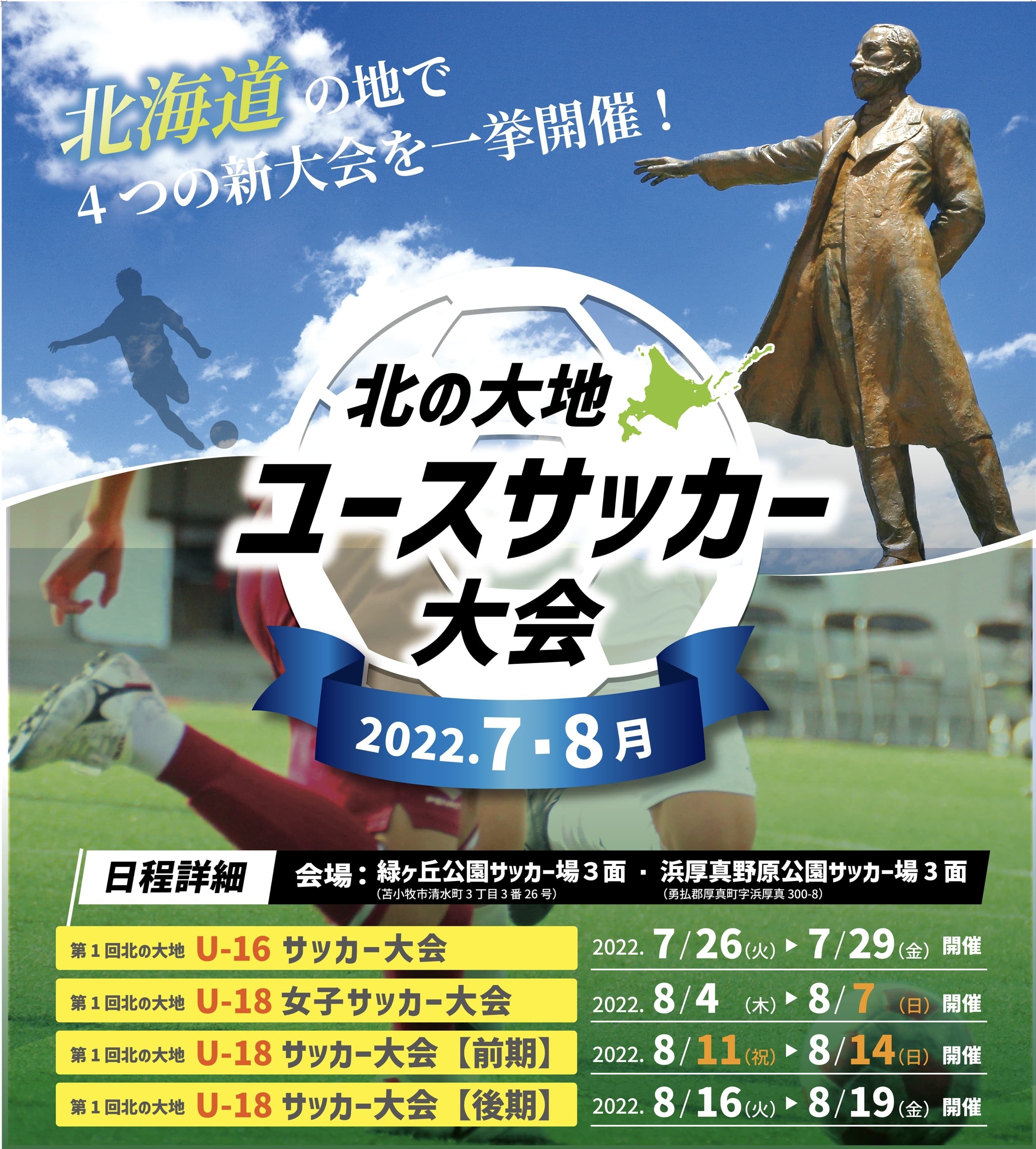 北の大地ユースサッカー大会では、下記の4大会を一挙開催いたします!