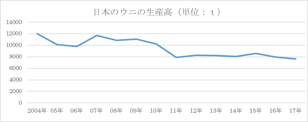 輸入量が減った要因として、ウニの生産高減少による価格高騰に伴い、海外に買い負けしていることが考えられます。