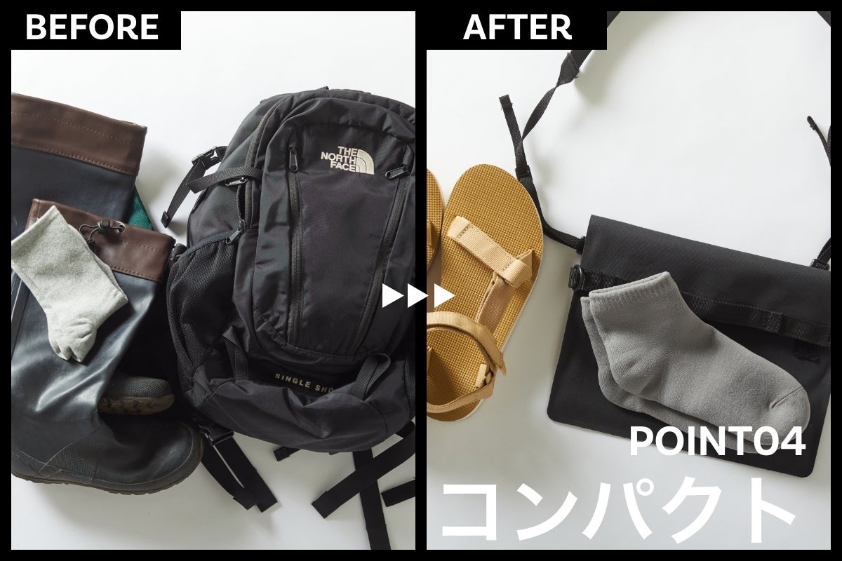 レインブーツや替えのソックス、レインシューズカバーなど、雨天に備えると荷物はついつい多くなりがち。