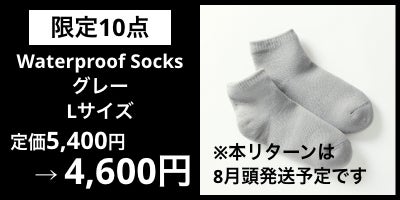 2022/06/20 14:36本プロジェクトのクラウドファンディング終了まで、いよいよ残すところあと7日となりました。おかげさまで週末の間に「Waterproof Socks」のご支援総額が70%を達成いたしました。これまでに42名もの方々からご支援を頂き、とても嬉しく思っております。また、Waterproof SocksのグレーのMサイズが完売&ブラックのMサイズが残り少なくなりましたので、Lサイズ同様、追加販売させていただくことにいたしました!初回分と条件が2点異なりますので、下記をご了承いただいた上で、支援をご検討いただければ幸いです。①商品価格については、15%OFFの4,600円となっております。②商品在庫の都合によりお届けは8月以降とさせて頂きます。皆様にもっとこの活動を知っていただくために、引き続き頑張っていきますので応援のほどよろしくお願いいたします! もっと見る