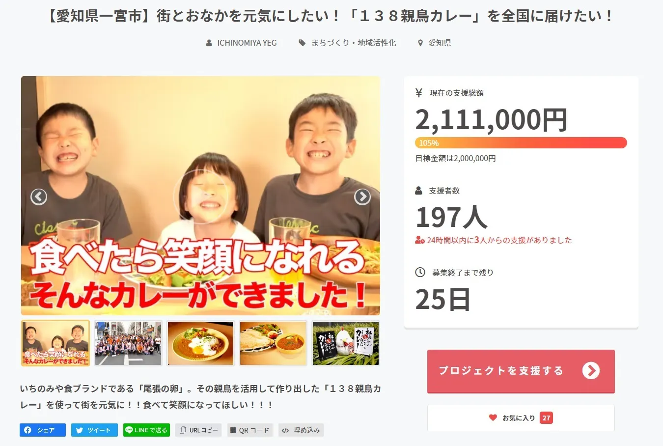 支援者数300人を目指して頑張ります。