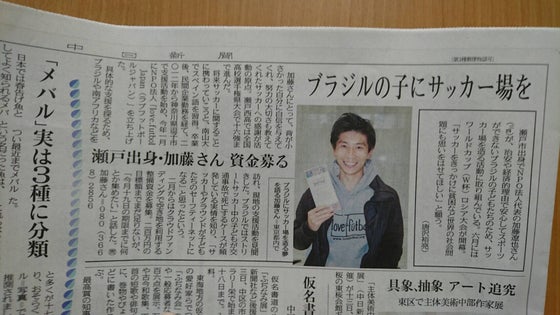 おはようございます。love.fútbol Japan代表の加藤です。今日の中日新聞朝刊にlove.fútbolのこと、ブラジルでのプロジェクトについて掲載頂きました! これを機に、love.fútbolが取り組む「子どもたちの安全なサッカー環境づくり」のことをさらに広めていきます!! 掲載にあたりご尽力頂きましたみなさま有難うございます! クラウドファンディングはあと6日です!!昨日の朝は73%でしたが、おかげさまで昨日の夜に164万円(82%)を突破しました!日々のご支援に感謝致します!https://camp-fire.jp/projects/view/59323 ラストスパートの応援宜しくお願い致します!