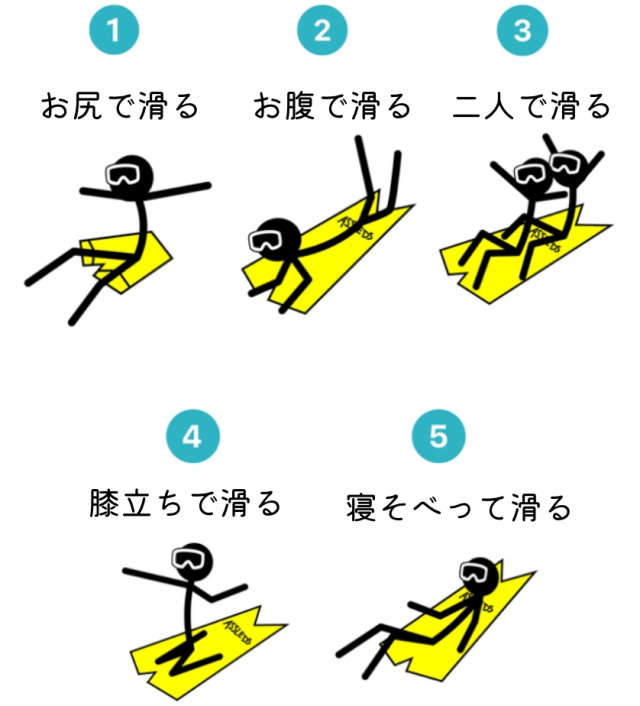 場所を問わず、そこに雪の傾斜があればどこでも遊べます。公園、スキー場、裏庭、裏山、どこでも折りたたんで持ち運んで楽しめる!