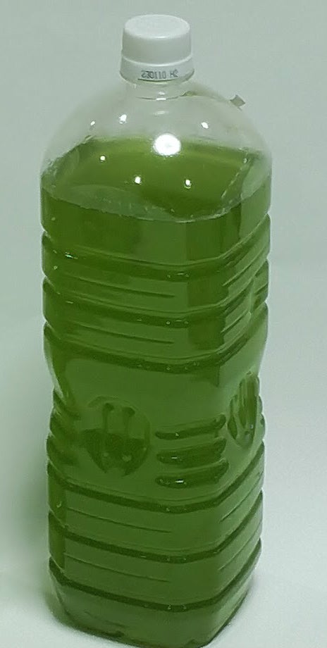 2022/06/18 00:08今春まで繰り返し続けておりました試作テストにおいて、3月末以降、タブレットの使用だけでも、長期間置くことで非常に濃いグリーンウォーターの作成が安定して可能になりました。写真のボトルは、2ℓボトルですが、ご覧のとおり、向こう側がまったく見えない濃さで、ゴミがまったく出ずに大量の緑色プランクトンが繁殖しています(本年5月撮影)。スタート早々、お申し込みくださった方々がおられ、発表して良かった!とたいへん嬉しく思っています。誠にありがとうございます!ご購入後も、どうか遠慮せず、お気軽にお問い合わせください。グリーンウォーターとミジンコ繁殖については、とにかく数々の試行錯誤を経て、豊富な経験量を積んできましたので、お役に立てることがあるのではないか、と存じます。 もっと見る