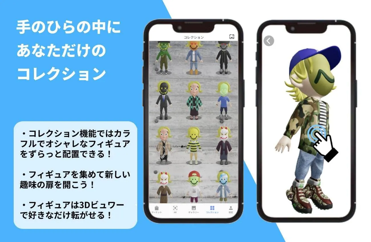 スマートフィギュアは全部スマホの中で完結します。場所を取らないため新しい趣味にうってつけ!