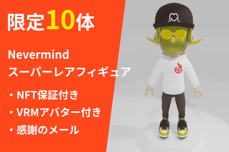 ・Nevermindフィギュアのアバター化は全てのフィギュアに対応しているわけではありません。なお、NFT化はOpenseaで行わせてもらうためNevermindの公式Twitterの方で順次ご報告します。
