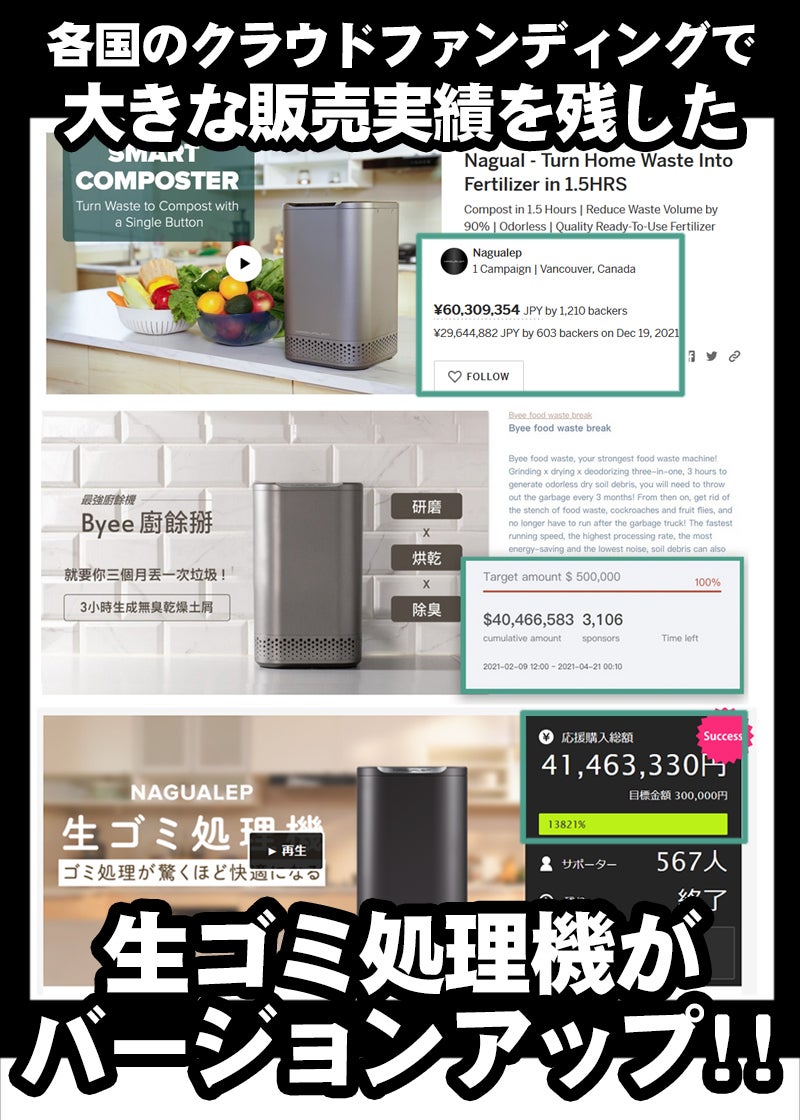世界各国のクラウドファンディングで大好評をいただいた「生ゴミ処理機 NAGUALEP」