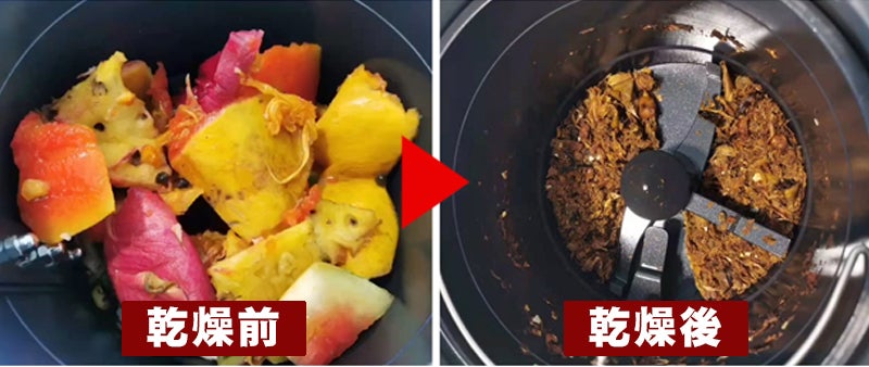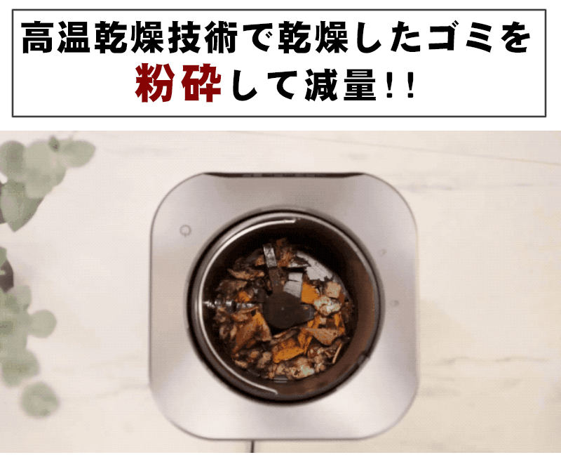 購入されボタン一つで乾燥、脱臭、粉砕まで完結、生ゴミを約8割も減量!