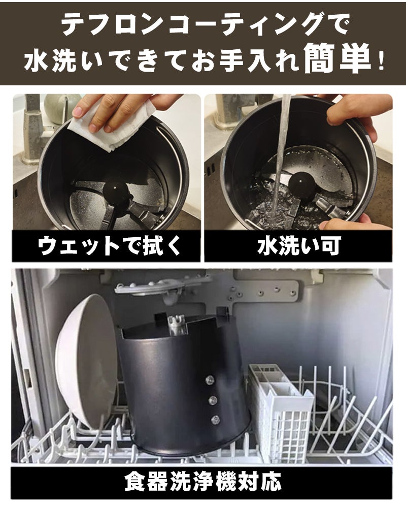 お手入れも簡単!内部の容器を取り出してウェットティッシュで拭くだけ!汚れが気になる場合、処理容器は鍋などと同じように水洗いすることも、食器洗浄機で洗うこともできます。