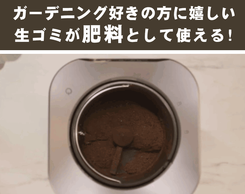 すると、「乾燥→脱臭→粉砕」と全自動で行い、生ゴミを約80%も減量しとくれるたけじゃなく、乾燥した粉末は有機肥料に!