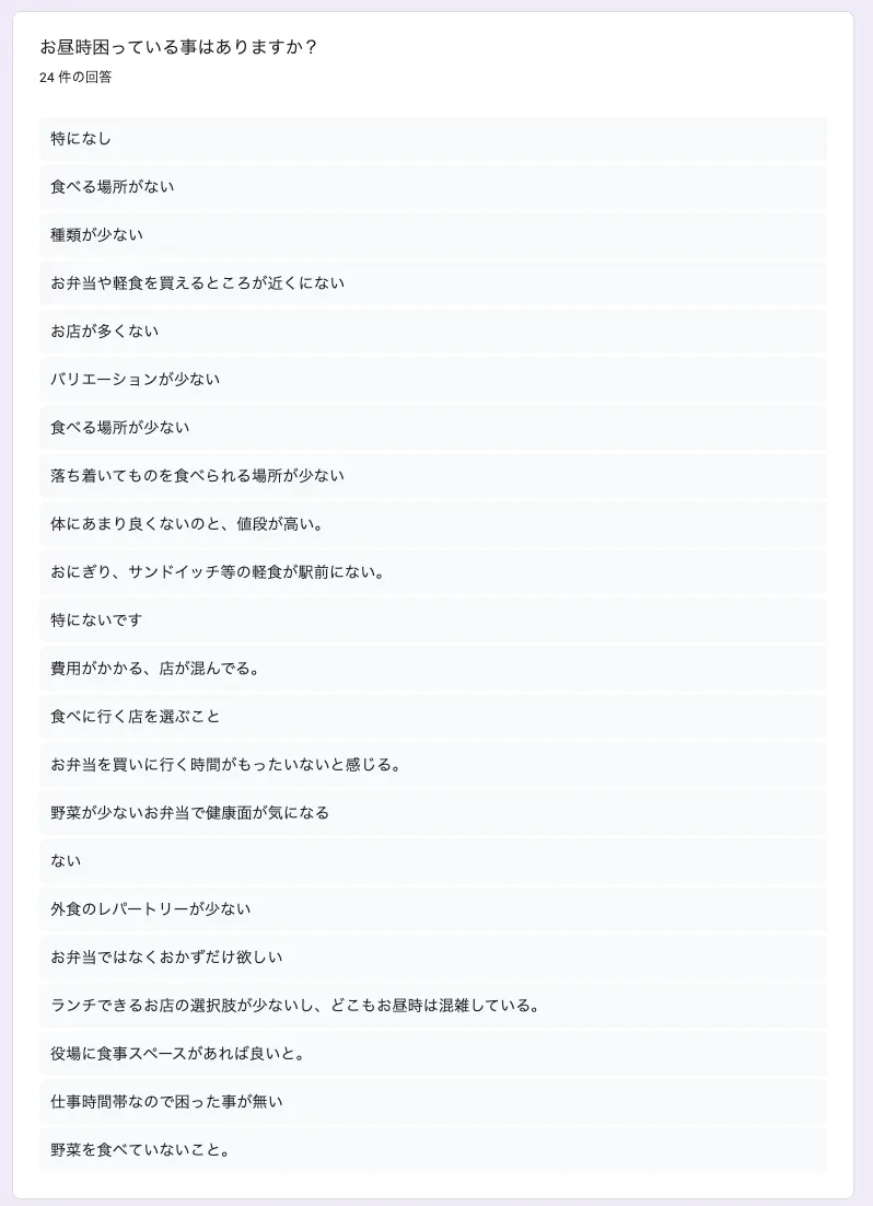 このように、外食を食べれる場所が少なく、お昼に集中するため混雑する。また、レパートリーが少なく非常に選択肢が少ない。
