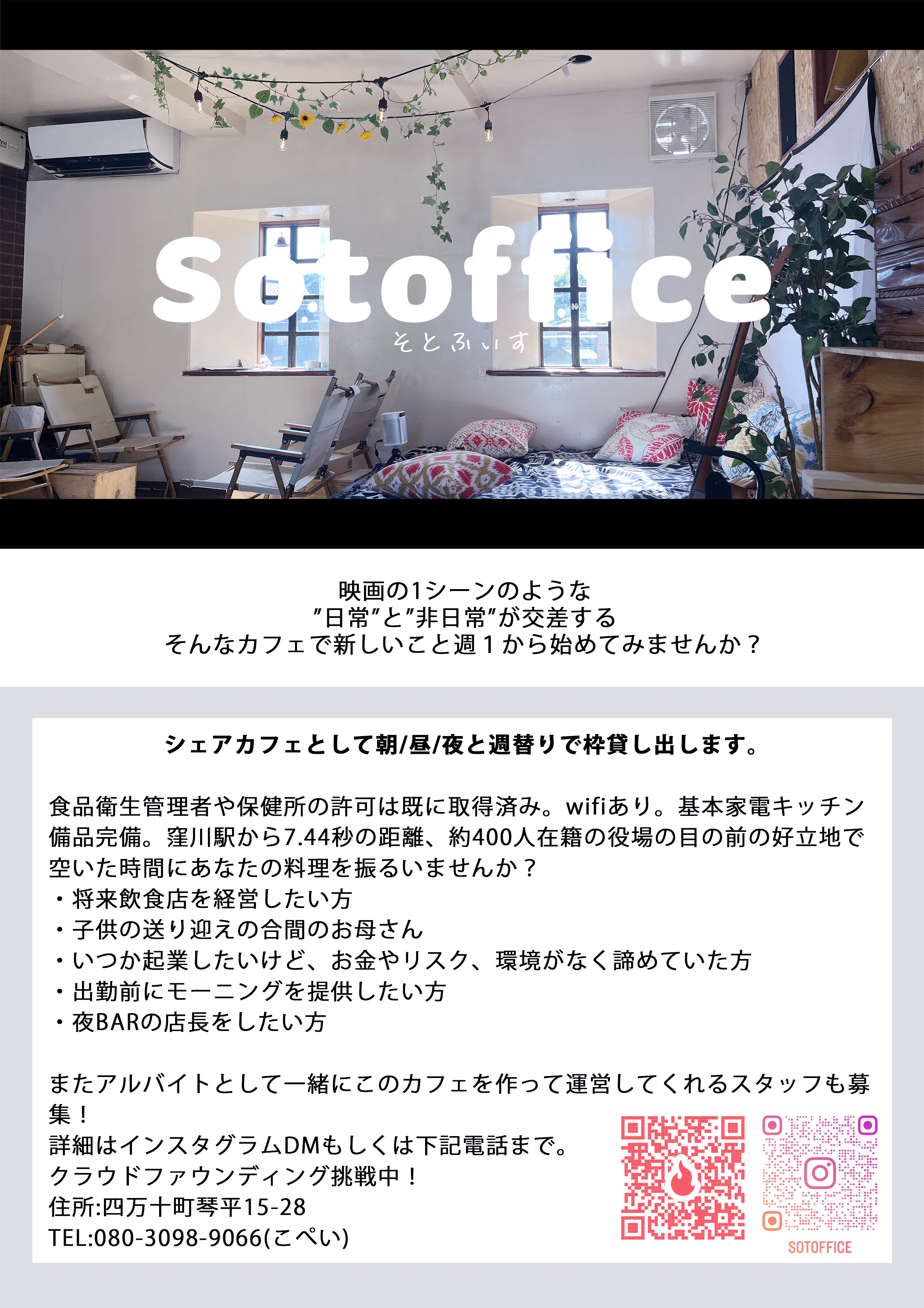 そんな地域の再生、自分自身の挑戦を [sotoffice] を通じて探していきます。