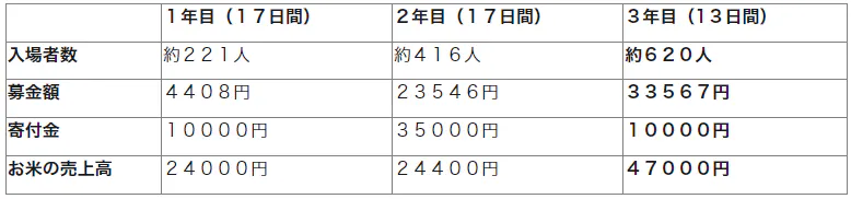 経費の半分は、市の補助金を2年目に活用 などしましたが、残り半分は佐田の郷の会費や寄付・募金等で賄っています。