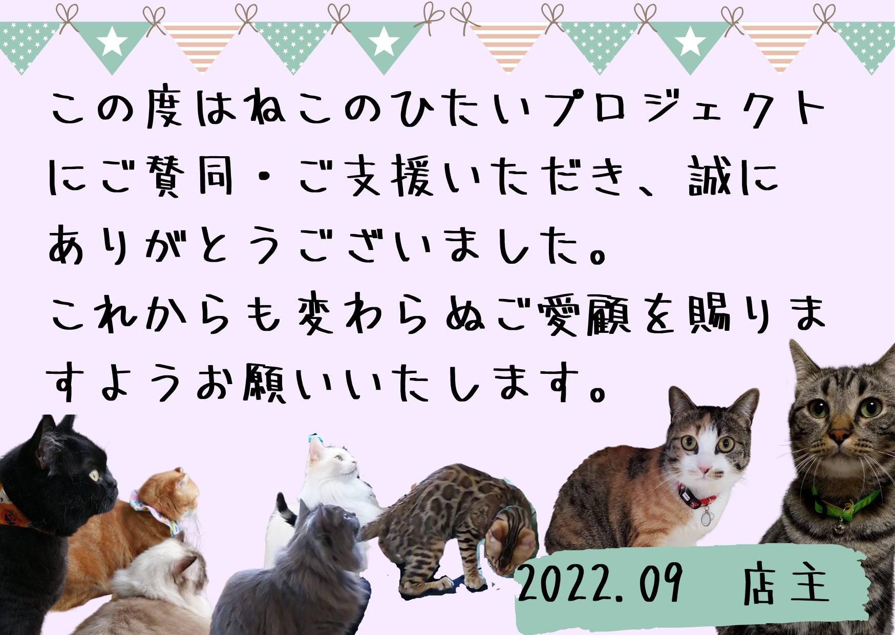 2022/09/01 23:30この度、クラウドファンディングにご支援いただいた皆様、本当にありがとうございました。120名の皆様から、総額1187000円ご支援頂きました。 支援総額 1187000円支援者数 120名100万円をこえるご支援と、多くの応援のお声をいただいたこと、改めて感謝申し上げます。本当にありがとうございました。皆様からいただいたご支援で、土地購入の着手金を支払い、土地購入に向けて前進したいと思います。これからも、猫スタッフ、ヤギスタッフ、および『ねこのひたい』をよろしくお願いします。ねこのひたい 店主 藤野 もっと見る