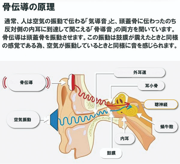 A.骨伝導技術により骨を介して聴覚細胞に音が直接伝わるため音をしっかりと聞き取ることが可能です。