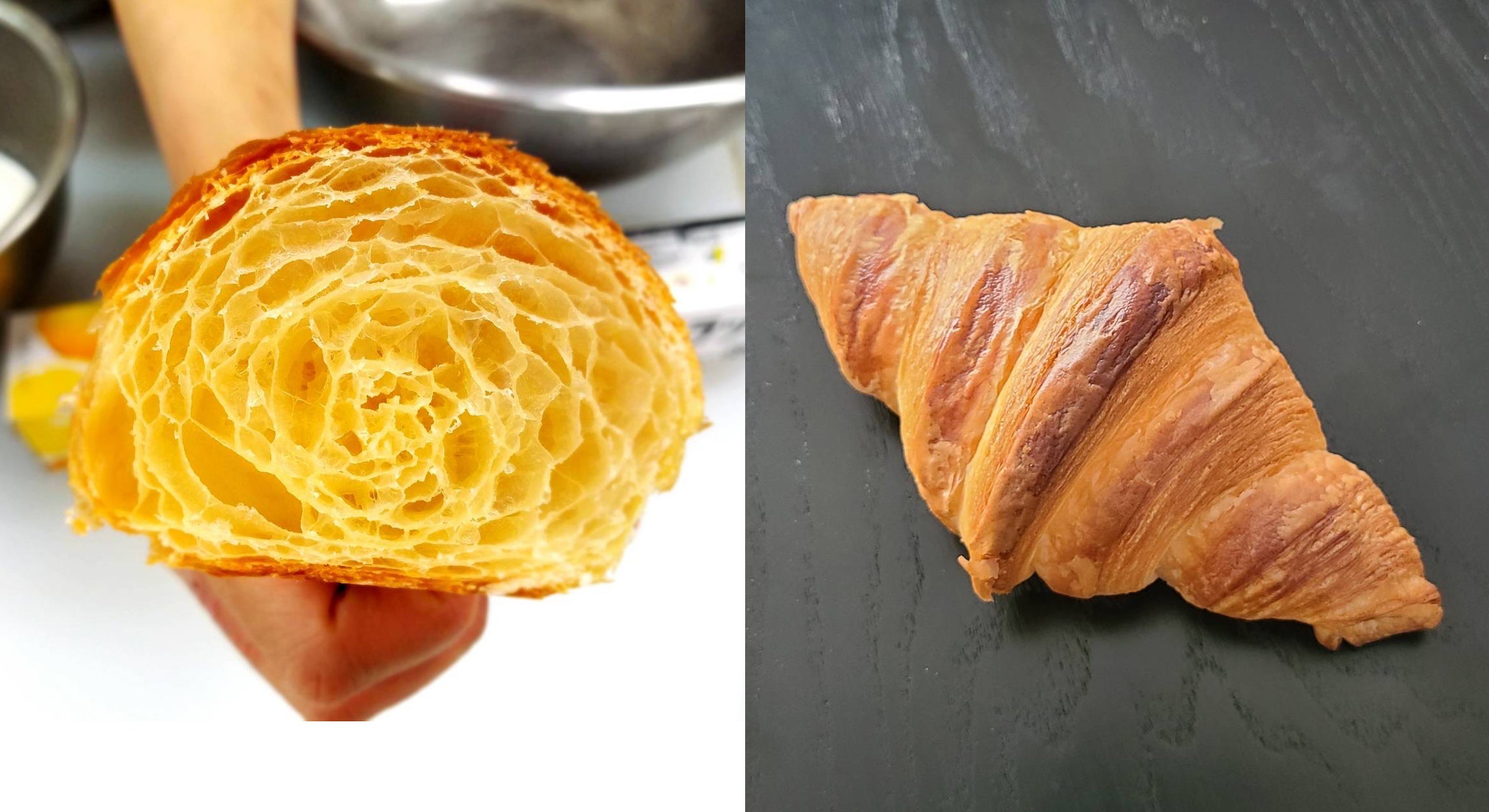 クロワッサンの折り込みに使用するバターシートも自分で大きさを決め綿棒でバターを潰しバターシートを作ってます。