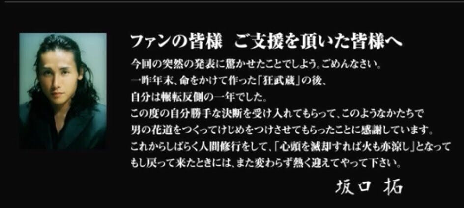 そして、彼は「狂武蔵」を最後に2013年3月俳優業を引退します・・・。