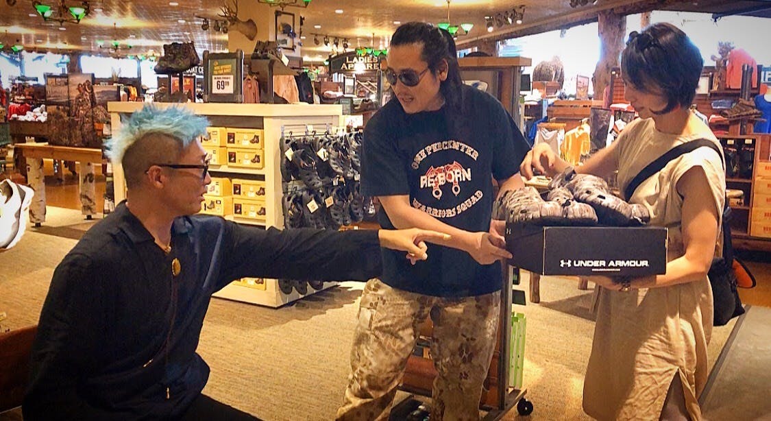 テキサスの映画祭に行く前に、TAK∴(坂口拓)が「ワークショップで履く靴を買え!」と言うのです。代わりに本人愛用の靴をリターン商品として頂きました。(商品はすでに売り切れました。有難うございました)