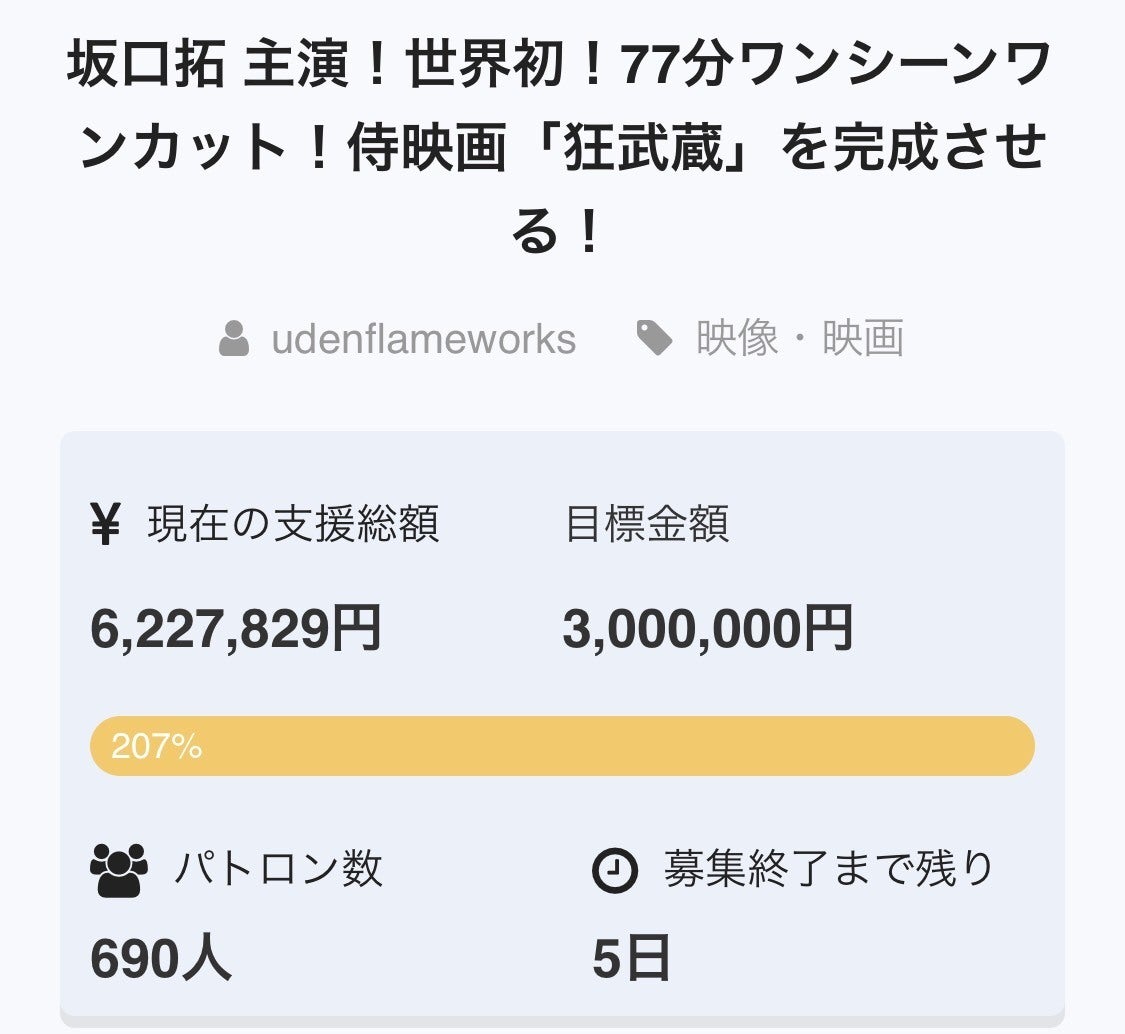 『映像.映画.舞台.パフォーマンス』支援総額の多いランキング 「8位」になりました。皆様の一口一口の支援のお陰です。