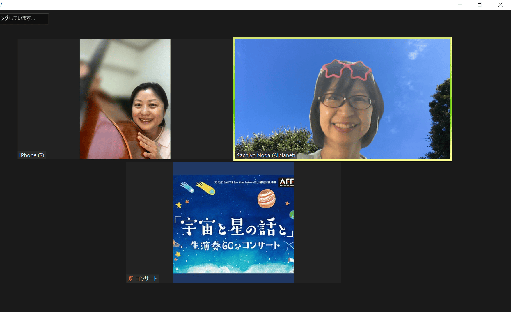 2022/08/18 12:02野田祥代先生とzoomミーティングいたしました。前回は60分を超える内容でしたので、少しコンパクトに修正いただき、バッチリな仕上がりです♪そして、野田先生がご用意くださった美しい星空写真と私たちがリハーサルで記録録音した音楽のコラボレーションが、想像を遥かに超えて素晴らしいものでした。これが生で観れて、聴けるなら、私も客席で味わいたい!と思う出来映えです。ぜひ沢山の方に【新感覚コンサート】をお楽しみいただきたいです♪★チケットはこちらからhttps://aoakuamusic39.stores.jp/ もっと見るこの歌声が生で聴けるんです!