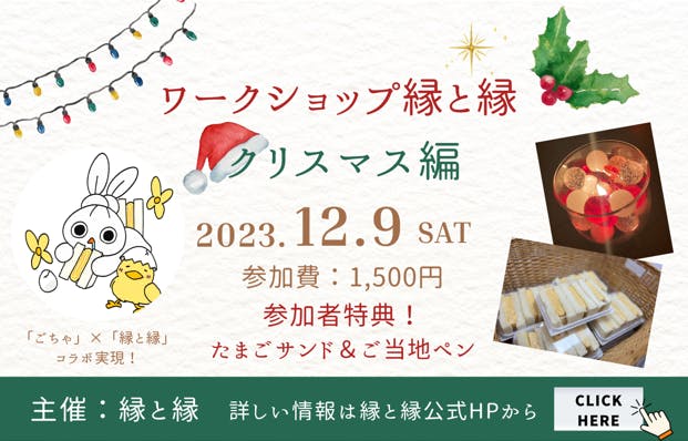 2023/12/29 19:5912月9日に行いました「ワークショップ縁と縁」にて35名のお客様にご提供させて頂きました!皆さま改めてありがとうございます!現在、出店回数が少なく一度に多くの方に届けることができておりませんが、今後イベントなどを行いより多くの方に皆さまからの「ご縁」をお客様に繋いでいきたいと思っております!2023年の活動は12月28日で最後となりましたが、2024年も頑張ってまいります!引き続き応援頂けると幸いです。宜しくお願い致します! もっと見る