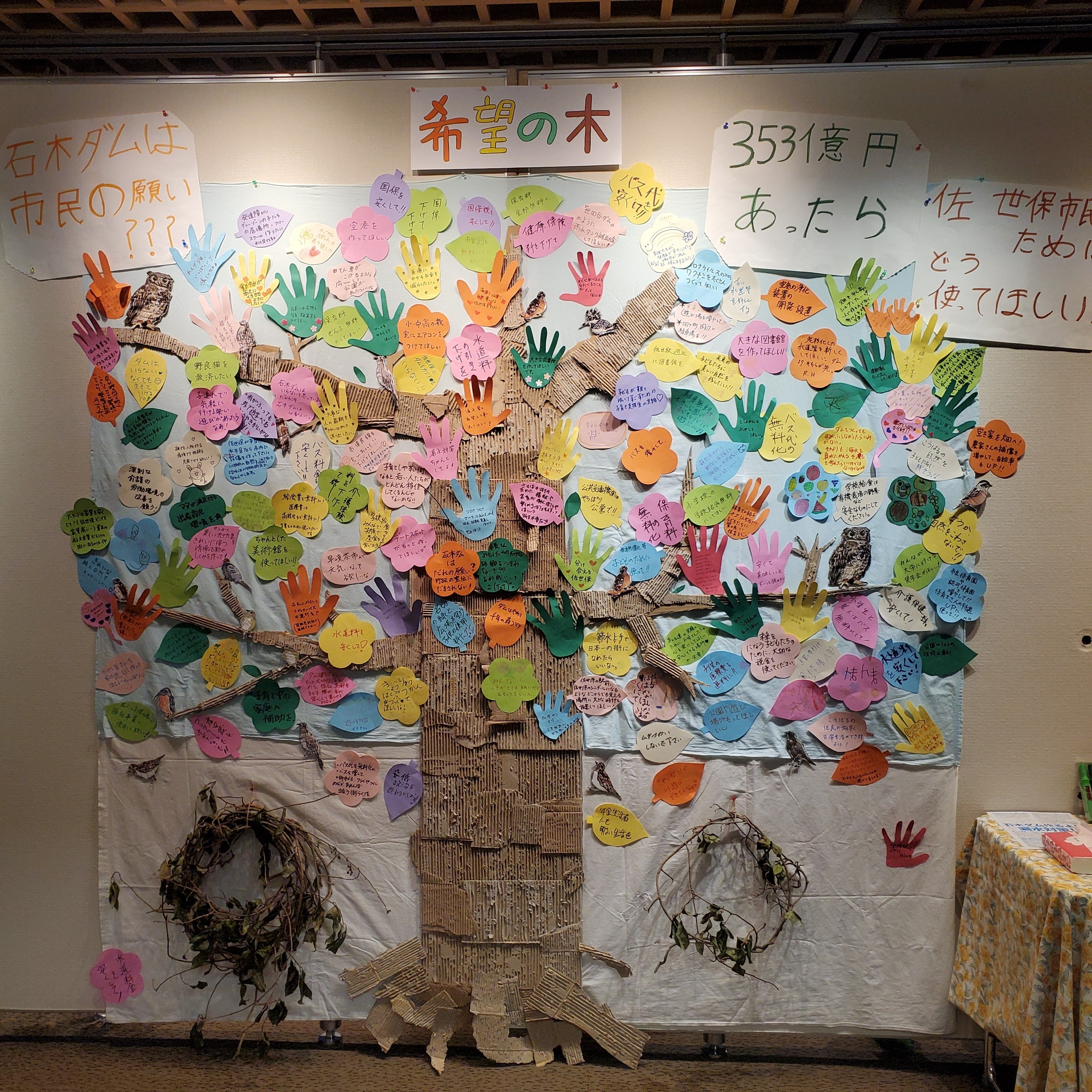 「石木ダム問題にかかる費用353億円あったら、佐世保市民のためにどう使ってほしい?」というテーマで、来場者に自由に書いていただきました。