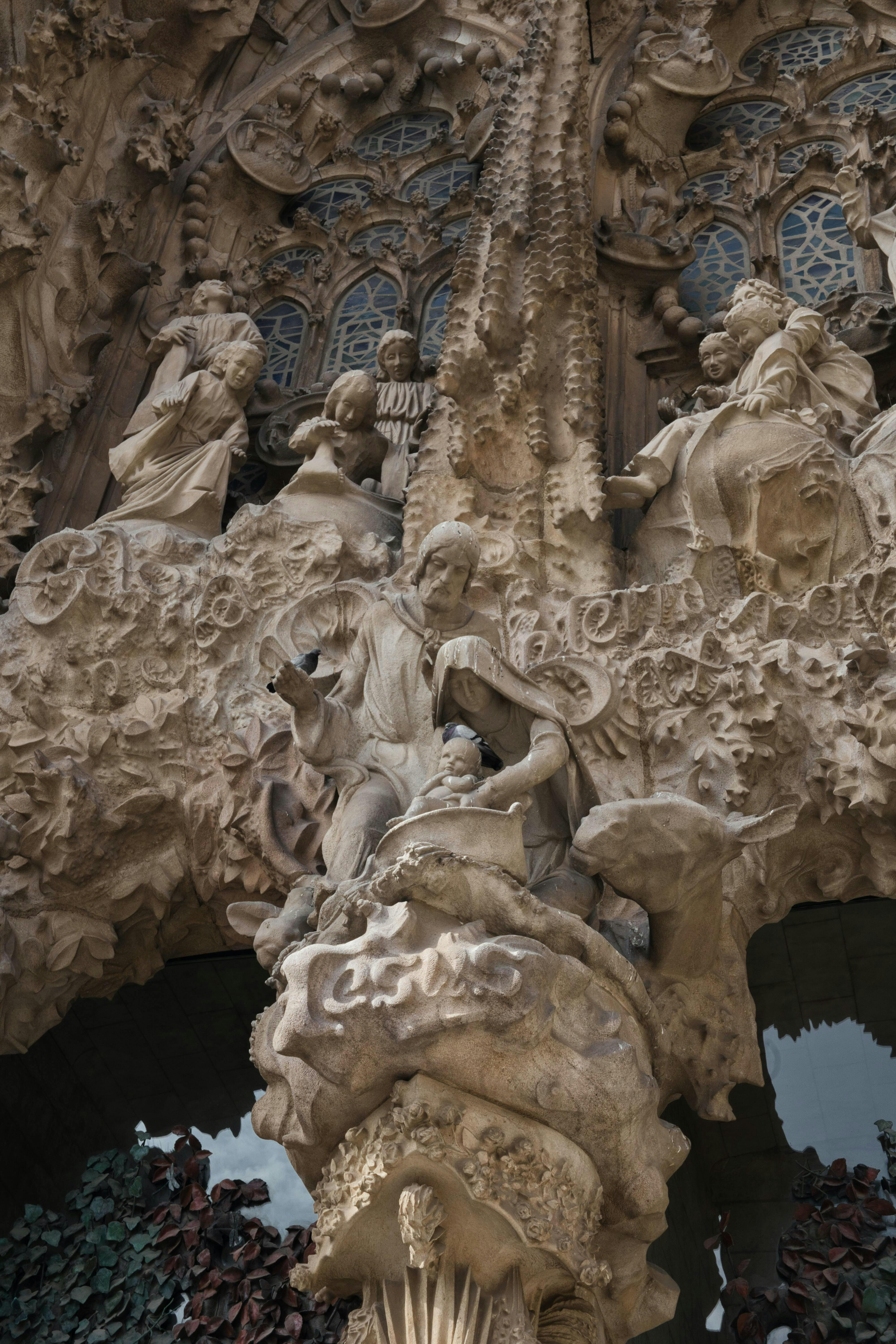サグラダファミリアは、まだまだこれから作る部分もあれば、100年以上前に完成している部分もあるので、建築と修復が同時並行されています。