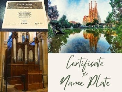 ・サグラダファミリア支援証明書+サグラダファミリア地下礼拝堂にお名前を刻印したプレート