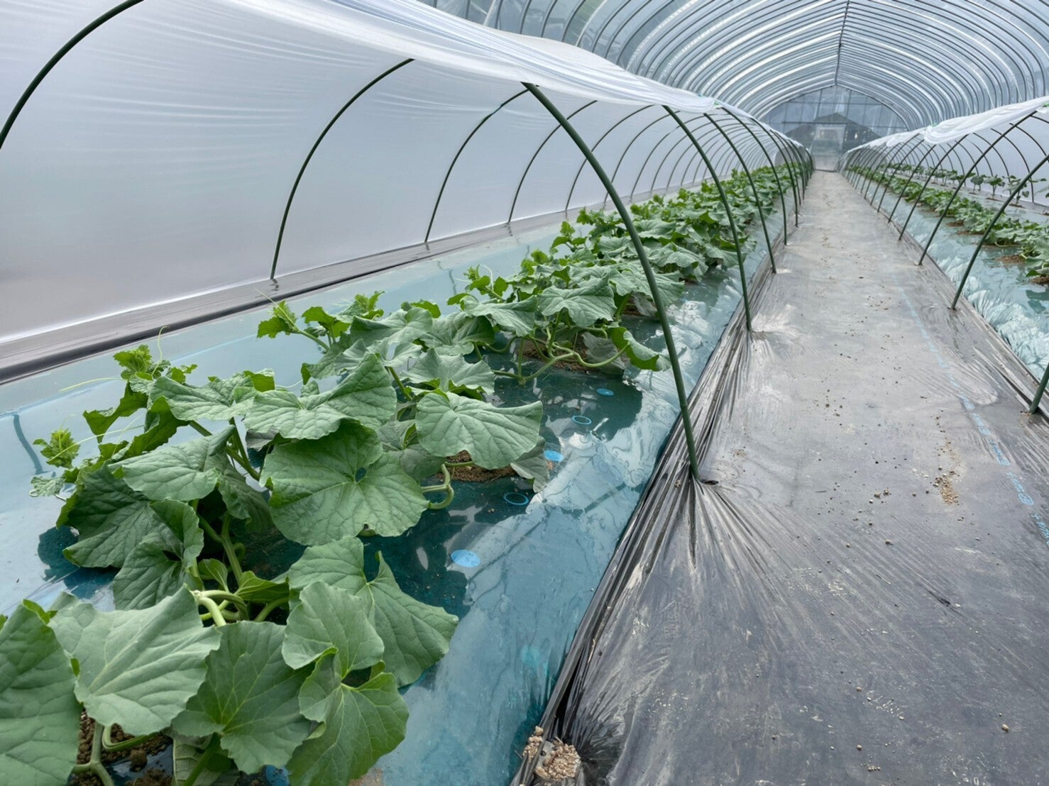 今年も例年どおり、ハウス栽培と露地栽培にてメロンを作っています!4月下旬から順次植えているメロンたちは、ぐんぐん成長しています。
