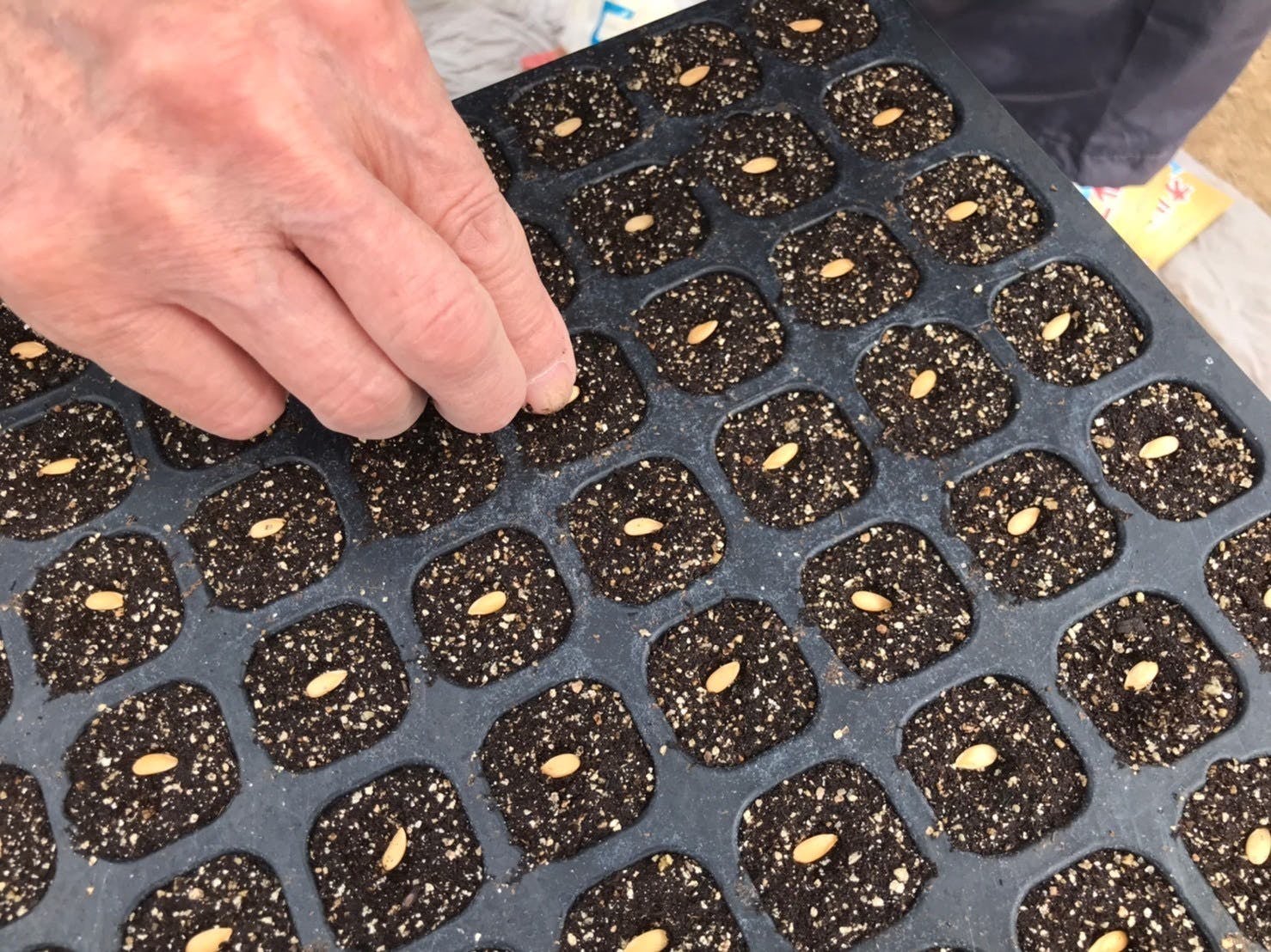 写真はメロンの種を植える様子。3代にわたり受け継がれてきたメロン作りですが、特に先代である父のメロンへのこだわりはすごいです!!